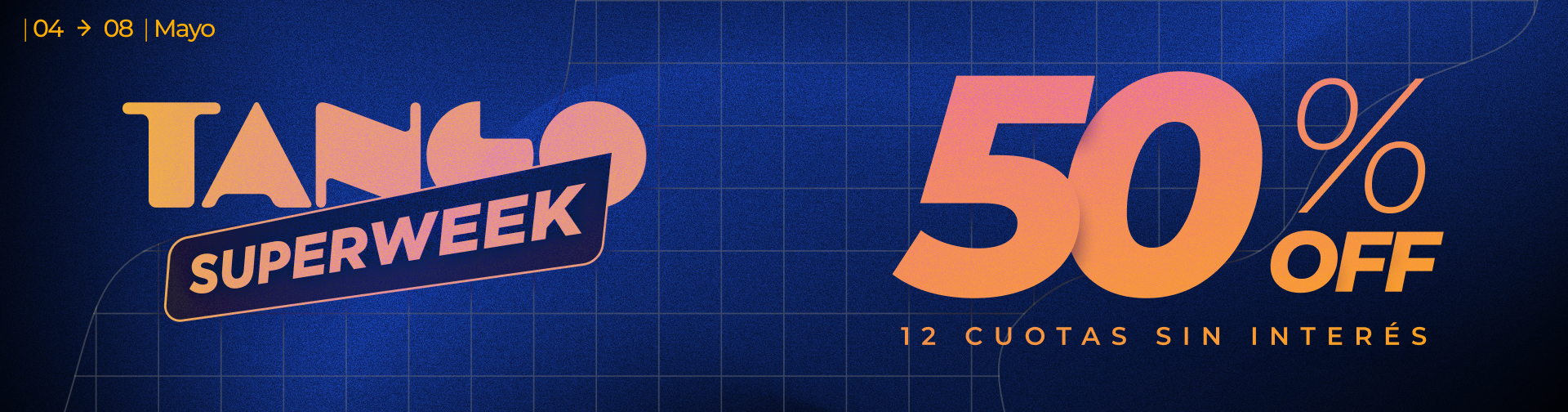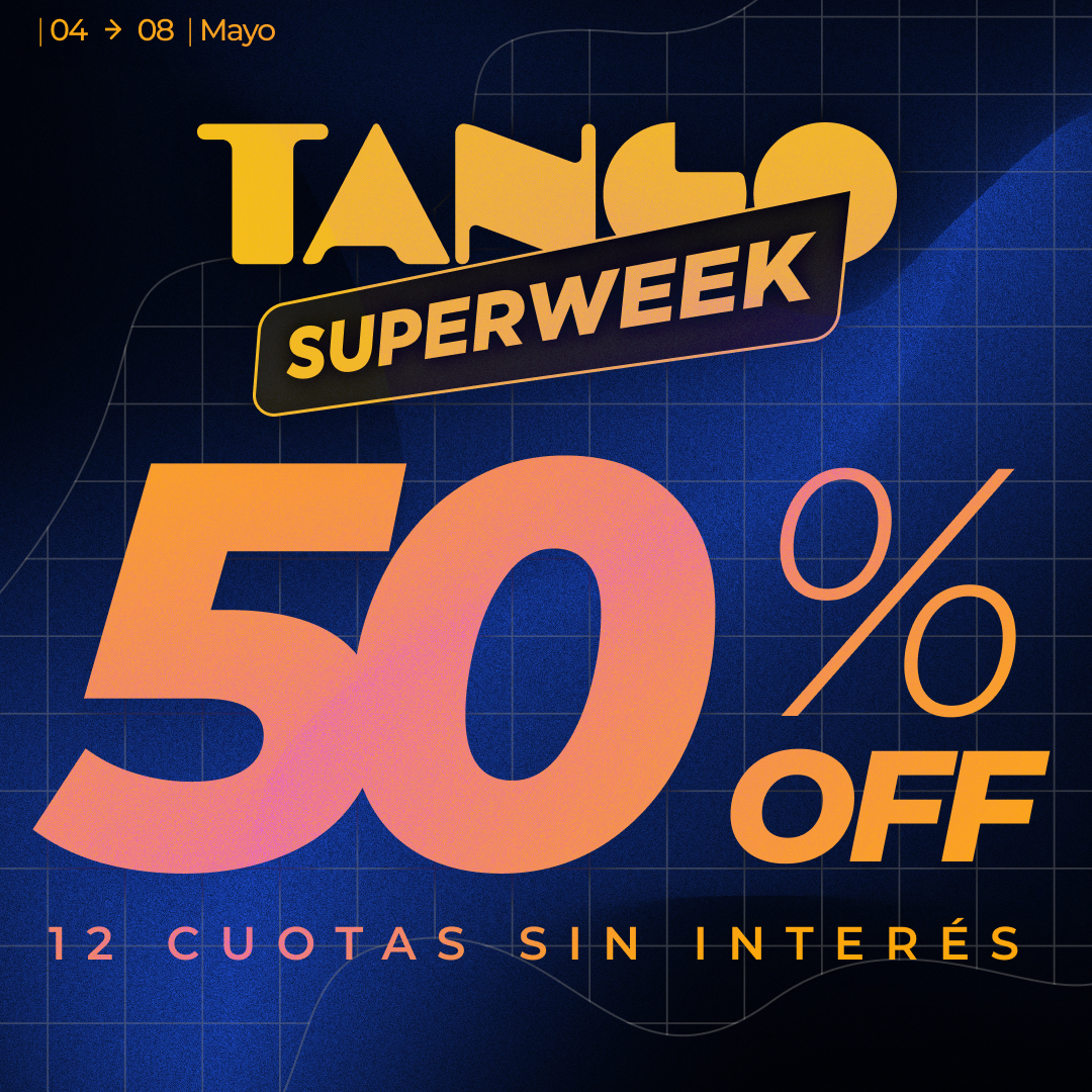 Promoción válida desde el 04/05/2026 al 08/05/2026. No están incluidos en esta promoción los siguientes productos y servicios: Extensiones (renovación del abono anual), Capacitaciones, Tango Nube, TFactura, TangoNet, Tango Empleados, Tango Connect, Tango Tiendas, Tango Billing (créditos), almacenamiento Nexo y Nexo Back Up, Packs de legajos adicionales para Sueldos, Frecuencia para Tiendas Full, servicio de hosteo, paquetes de servicios de Tango Restô y Tango Punto de Venta. Esta promoción no puede combinarse con otras vigentes.